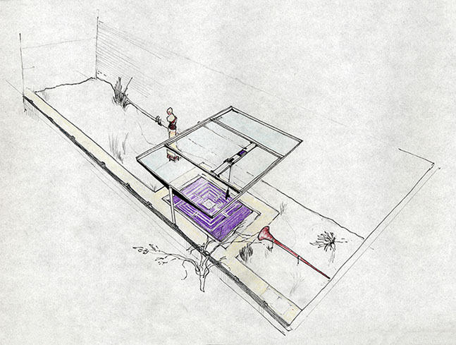 Aurelian Labyrinth: Proposal drawing for the transformation of a secret garden at 69 Peckham road in South London 2005.
