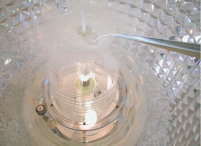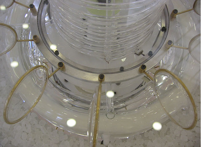Die Berliner Zuckerbarin: Primary Prismatic Chamber extracting sugars from the bear’s milk and bonding it on glass thread. Hamburger Bahnhof. 2003.