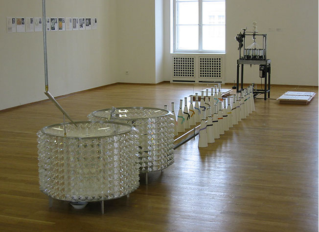 Die Berliner Zuckerbarin: Saturate Still, and glass distillation vessel for extracting sugars from plant matter, instrumental in assembling the 24 instigators, Hamburger Bahnhof, Berlin. 2003.