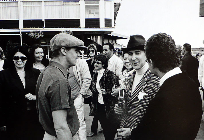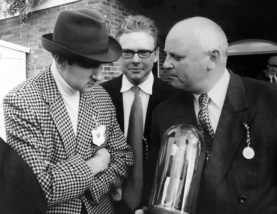Equestrian Opulator: Mr. Orange seen holding the winning Trophy, consulting the Equestrian Opulator Committee on the ceremonial proceedings about to take place. 2001