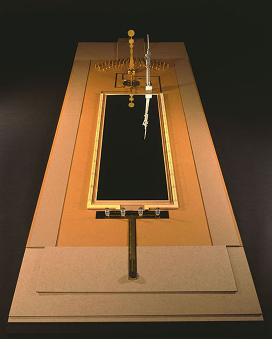 New York–New York: Model of New York–New York, a special vitrine with two drawers at each end with explications of the project, 72 x 24 x 45 in., 1999. Edition: 3. See Editions.