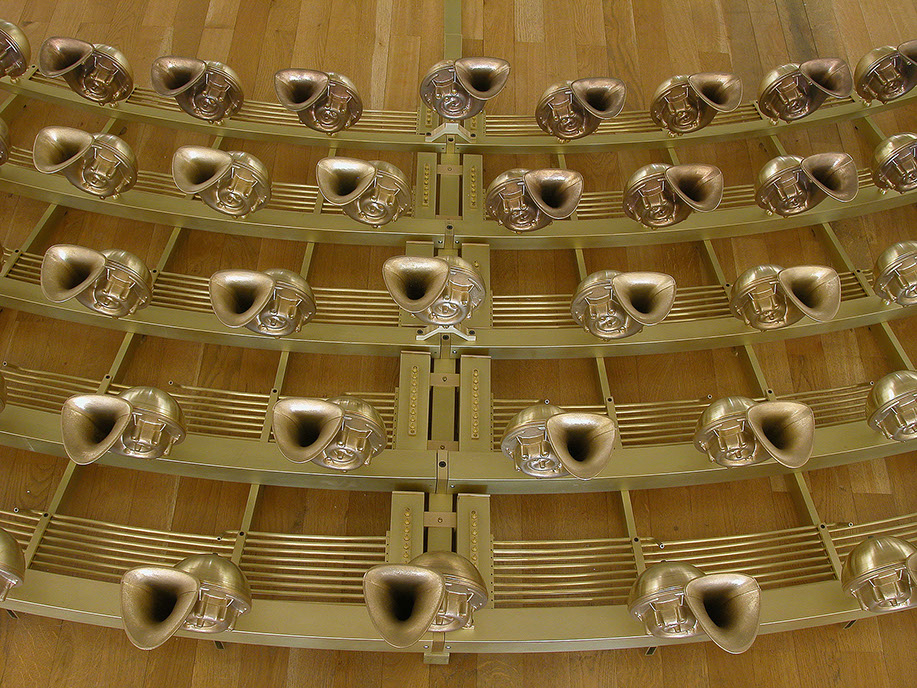 New York–New York: The Field, eighty-six cast brass Buick car horns, part of New York–New York, installation view Hamburger Bahnhof, Berlin. 2003