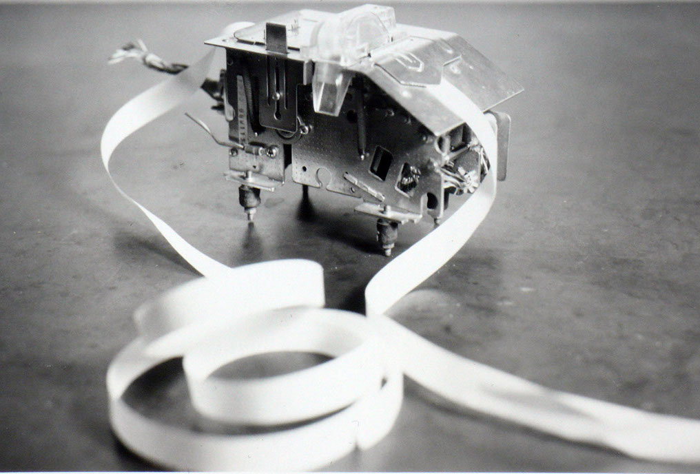 New York-New York: The Ticker Tape Recorder, which records on punched paper ribbon the entire performance of New York –Hot’s orchestration and New York -Cold’s Bond production for future use to produce clouds, in the Cloud Chamber. 1995.