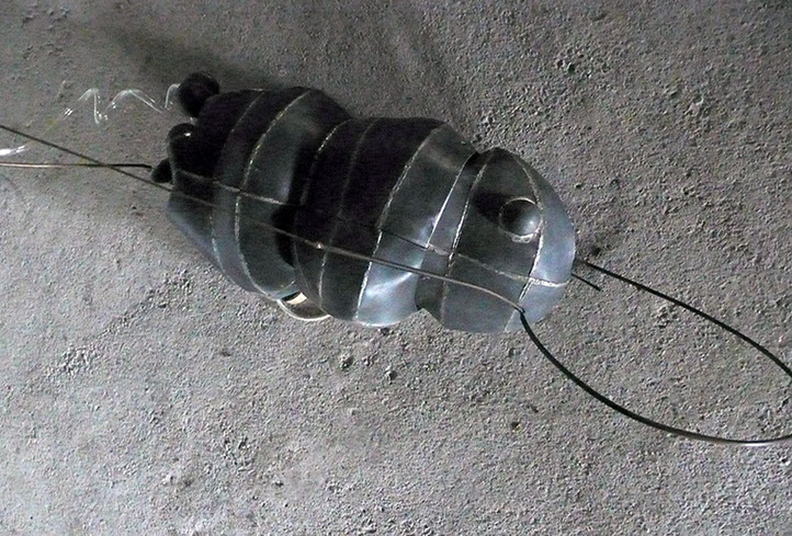 The Expeller (male) is a lead clad (battery and transformer) energy source. His abdomen moves erratically and, fully extended, activates a solenoid which flicks his tail forward, carrying some 7000 volts direct current.