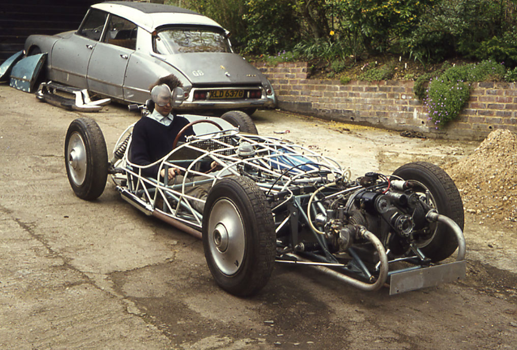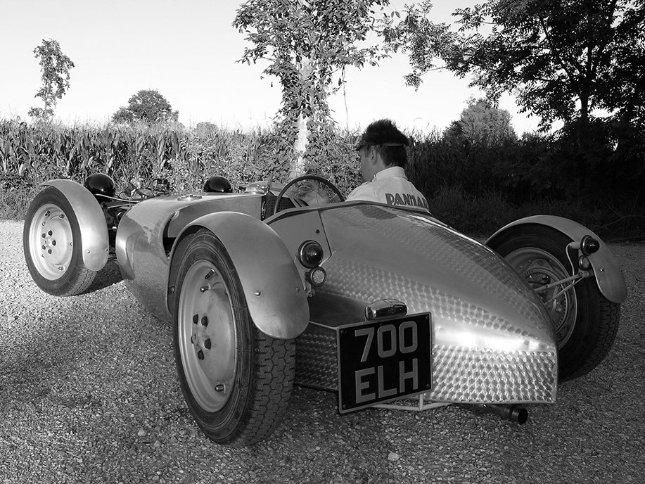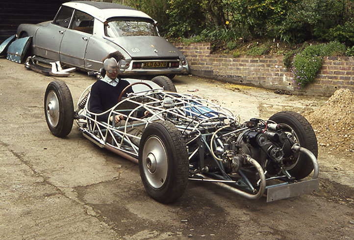 Panhard Special: Testing the Panhard Special with the silk bodywork removed. 1978.
