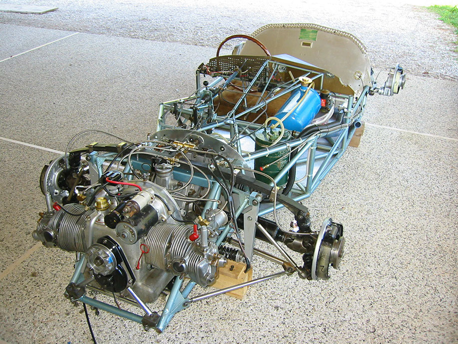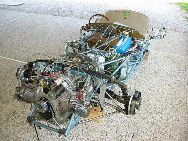 Panhard Special: The Panhard Special had been stored for almost thirty years in an unheated barn in England; it was shipped to Italy and underwent full a restoration in the summer of 2005, shown here with the aluminum body removed. 2005
