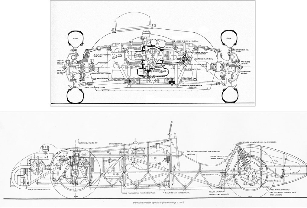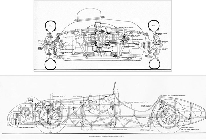 Panhard Special: Cross section of the Panhard Special drawn 1-4 scale, below the side elevation, both in Indian ink on Mylar. These drawings together with two others are reproduced in the edition. 1976 See Edition