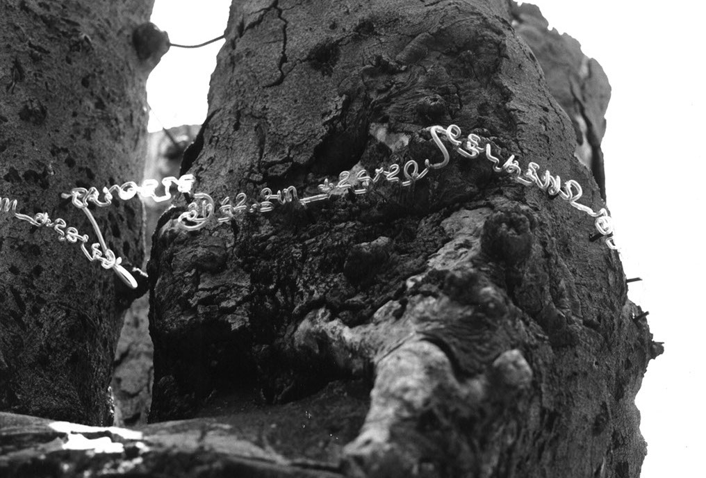 This project was a direct response to the site and was intended, as homage to this historic tree the ephemeral nature of the crystal growing and layering of mythology needs further explanation. See Editions The Purification of Fagus Sylvatica Var Pendula. Published by Coracle/Granery Press New York.