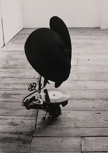 Raniculus and Remus: Remus slowly orbiting Raniculus whilst playing The Blue Danube by Richard Strauss on the phonograph during the climax of a lunar cycle, Carlile Gallery, London.1985