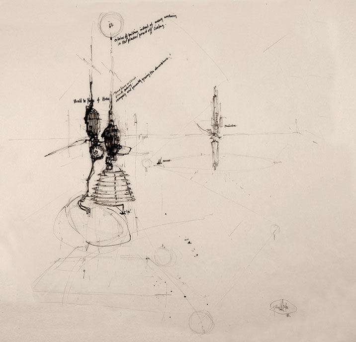 Raniculus and Remus: Early preparatory drawing. 1985