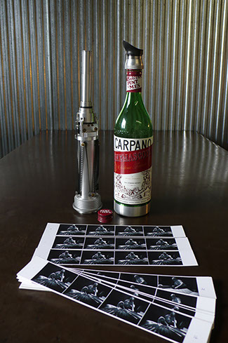 Sinfonia Torinese: Cinemascopia. Precision optical mechanism concealed within a bottle of Carpano’s Punt e Mes. Unique work, with printed labels and operating manual. 2004 See Books