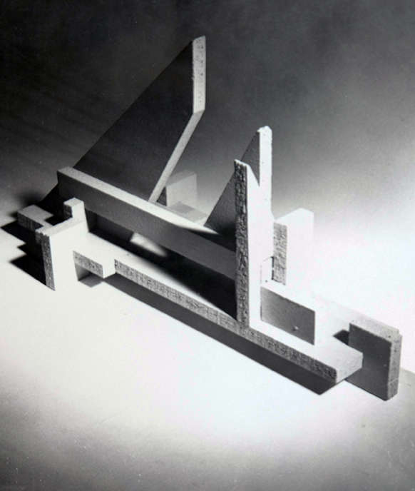 Telisocitum, Tankapillia: One of the stage set models. Painted wood, destroyed. 1977