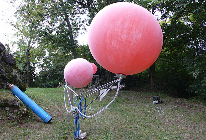 Theraputica: Main Fuselage and the Sub Conscious Interrupter, awaiting inflation with Helium, filmed in Friuli, Italy. 2010