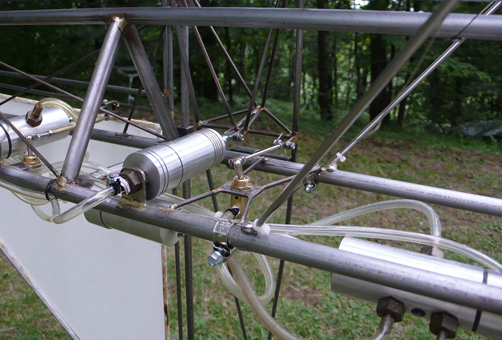 Theraputica: The pneumatic actuator cylinders attached to the Vanes of the Main Fuselarge, filmed in Friuli, Italy, 2010.