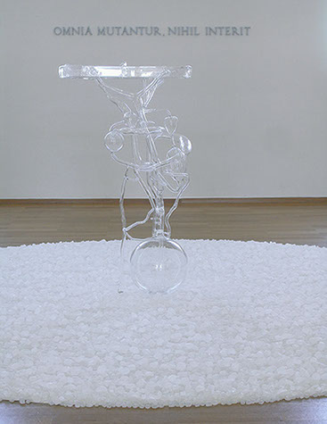 Die Berliner Zuckerbarin: Saturate Still, and glass distillation vessel for extracting sugars from plant matter, instrumental in assembling the 24 instigators, Hamburger Bahnhof, Berlin. 2003.